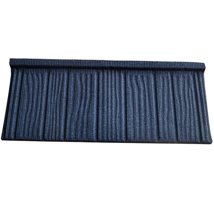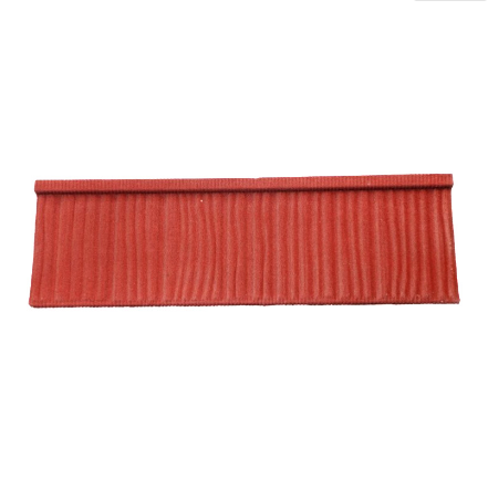 (1)基材:鍍鋁鋅鋼板 鍍鋁鋅鋼板的選擇對彩石金屬瓦的使用年限影響很大,博天牌彩石金屬瓦選擇時一般采用金色耐指紋保護膜,鍍鋅含量至少達到80克,板厚至少0.4mm,表層能明顯感覺到光滑面和鋅花,這樣瓦片不易生銹。