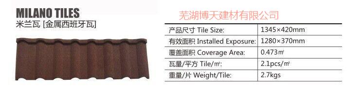 米蘭瓦(金屬西班牙瓦)色澤鮮艷,豐富多彩,美觀時尚,既具有傳統陶土瓦的自然、渾厚的優異裝飾性能,又具有現代金屬瓦的輕巧、堅固、耐久的優良使用性能。