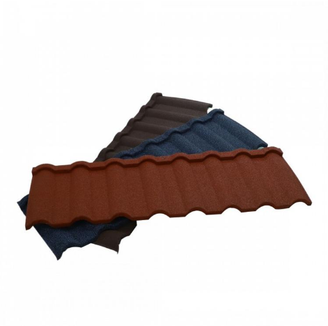 彩石金屬瓦是采用新技術生產的,以防腐性能優異的鍍鋁鋅鋼板為基板,以耐候性極強的丙烯酸樹脂為黏合劑,以彩色天然沙礫為面層的新型級屋面材料。因其美觀、輕巧、耐用、環保,近年來已經成為國際屋面材料的主流產品。