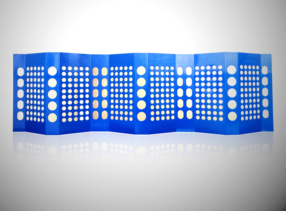 用彩涂鋼板做為基礎材料、用鍍鋁鋅鋼板做為基礎材料、用不銹鋼板材做為基礎材料的金屬防風抑塵網板材厚度0.5mm-1.5mm,由數控設備進行沖孔,成型,但不需要進行表面處理。